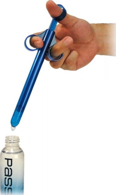 Aplicator intim pentru lubrifiant, usor de folosit datorita dimensiunilor sale reduse, sub forma unei seringi. Se umple, se foloseste si se curata foarte usor. Este creat pentru a fi folosit foarte usor cu o singura mana. Cu ajutorul inelelor comode cu care este prevazut poti incarca si descarca aplicatorul cu o miscare simpla. Aplicatorul este prevazut cu capacel pentru a preveni lichidul sa curga din aplicator pana cand e momentul potrivit pentru aplicare.