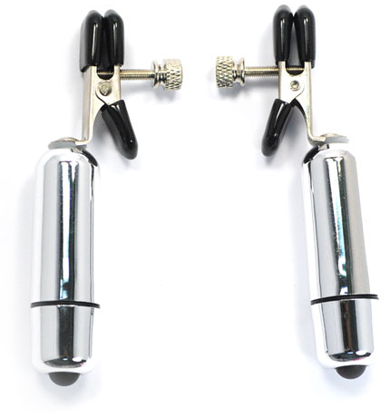 Clame special create pentru stimularea sfârcurilor, prevăzute cu 2 glonțe cu vibrații. Complet ajustabile și foarte confortabile – cele două clame au capetele căptușite cu silicon moale. Cele două gloanțe au 3 baterii LR44, incluse și o singură viteză de vibrație. Vin însoțite de un săculeț pentru depozitare. Acest produs beneficiază de garanție timp de 2 ani de la achiziție!