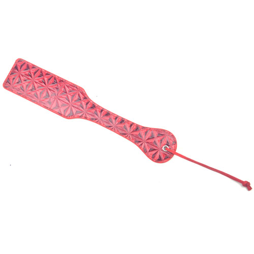 O padela cu aspect gravat cu modele geometrice, de culoare rosu metalizat, foarte solida. Ideala pentru jocuri de supunere si disciplina.