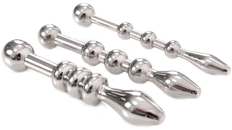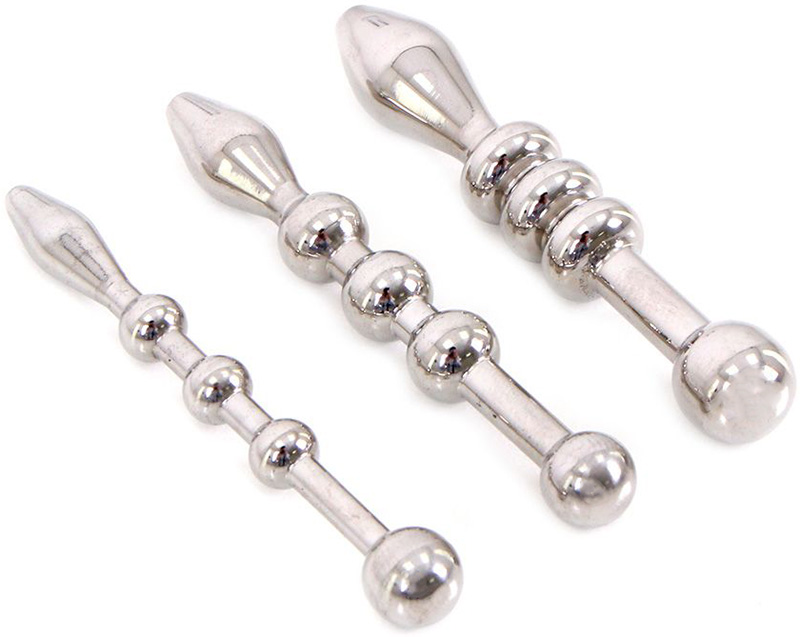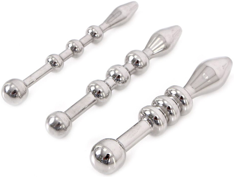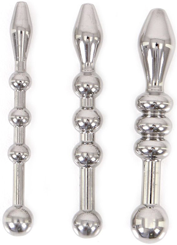 Set de 3 dilatatoare de uretră cu diametrul cuprins între 6 mm și 10 mm. Cu o lungime de inserție de 5 mm acest kit este perfect pentru începătorii în fetișul ce implică dopurile pentru penis. Acestea sunt confecționate din oțel inoxidabil, ultra igenic și foarte sigur cu corpul. Acestea sunt prevăzute cu 3 bile pentru senzații incredibile.