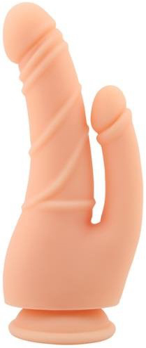 Dildo pentru dublă penetrare fabricat dintr-un material deosebit, Silicon Lichid, cu un material mai moale, mai mătăsos, mai calitativ decât alte materiale. Datorită proprietăților acestuia, materialul este foarte flexibil, poate fi îndoit în orice unghi dorești, revenind cu ușurință la forma inițială. Această jucărie sexuală te stimulează vaginal și anal simultan, oferindu-ți cele mai explozive orgasme. Ambele brațe sunt construite cât mai realist, cu gland bine definit și vene proeminente. Dimensiuni: Braț mare: lungime: 13,5 cm diametrul: 4,3 cm Braț mic: lungime: 9 cm diametrul: 2,5 cm Produsul este dotat la bază cu o puternică ventuză care aderă la orice suprafață plană, lăsându-ți mâinile libere pentru îndeplinirea tuturor fanteziilor.