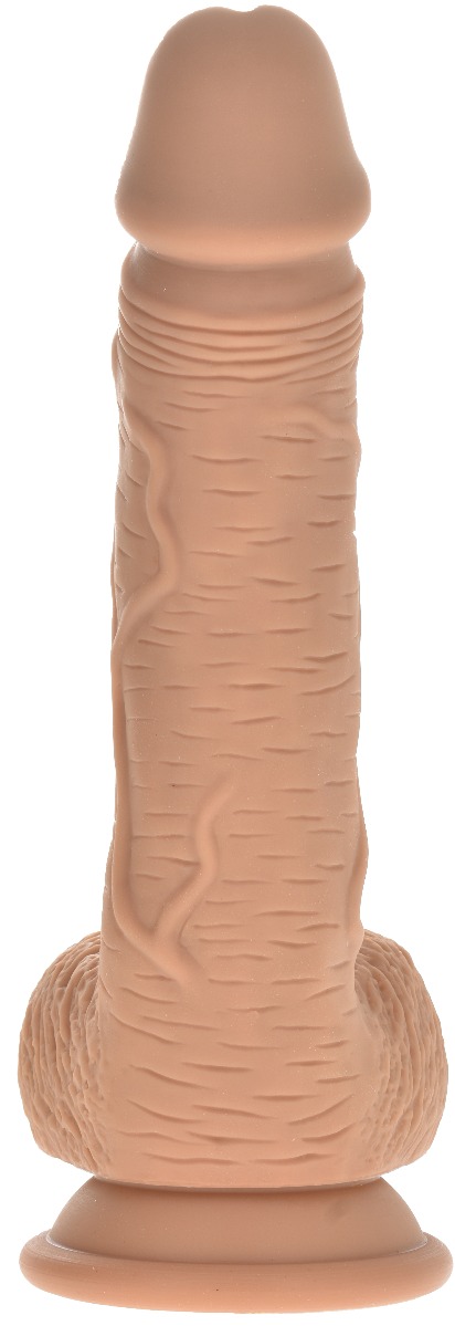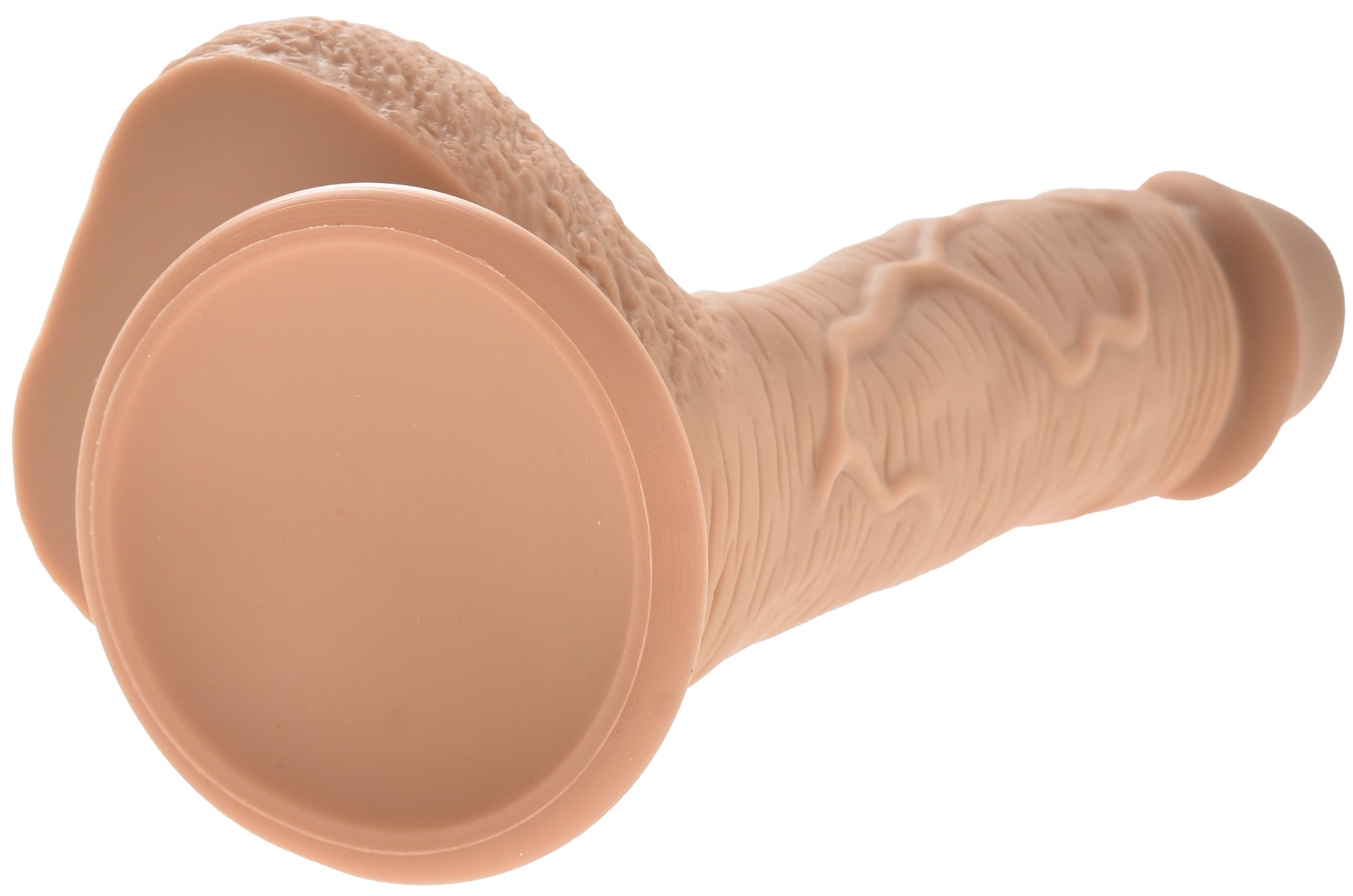 Un dildo durabil bun, cu aspect realist, modelat dintr-un material premium, silicon lichid, este o investie pe termen lung pentru placerea ta! Uita-te la acest dildo de 22 de cm-este o opera de arta erotica gata sa-ti ofere cea mai neuna dorinta! Fiecare detaliu picant este aici, de la un cap bine definit, la vene proeminente si testicule realist texturate. Apuca-le si ghideaza-ti jucaria spre zonele ce tanjesc dupa afectiune. Siliconul lichid este un material cu proprietati superioare celorlalte materiale de jucarii sexuale disponibile pe piata: mai moale, mai durabil, mai flexibil. Lipeste baza ventuzei pe orice suprafata plana: scaun, masa, usa, podea pentru jocul mainilor libere. Materialul din care este construit este unul de buna calitate, 100% hipoalergenic si sigur pentru corp, foarte matasos la atingere, compatibil insa doar cu lubrifiantii pe baza de apa. Si foloseste din plin deoarece acest dildo are dimensiuni peste medie! Acest produs beneficiaza de garantie timp de 2 ani de la achizitie!