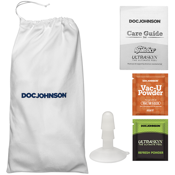 Implineste-ti fanteziile cu acest cuplu misterios Leolulu! Acest set include un masturbator Leo Pussy Ultraskin si un dildo realist Lulu, pentru ca sa te cuplezi cu unul sau cu amandoi partenerii! Sa incepem cu Dildo Lulu! Fiecare detaliu a fost capturat datorita unei matrite din viata reala, de la varful conic la testicule groase care se pot stoarce. In afara de aspect, trebuie sa vorbim despre materialul ULTRASKYN al lui Doc Johnson. Moale la suprafata si ferma la interior, la fel ca penisul real erect, ULTRASKYN chiar se incalzeste la temperatura corpului in timpul jocului! Desi poate fi folosit in mana, acest dildo a fost conceput pentru a fi utilizat cu linia accesorii Vac-U-Lock Doc. Baza cu testicule are o mica deschidere pentru dopul cu ventuza inclus, doar introduceti-l si sunteti gata sa-l fixati de perete sau podea. Dopul poate fi usor schimbat cu un dop standard Vac-U-Lock pentru utilizare cu un ham sau cu un alt accesoriu compatibil cu Vac-U-Lock. In ceea ce priveste masturbatorul Leo, este 100% pregatit pentru calatorie si este perfect pentru noptile solo. La fel ca si dildo, acest stoker vine la tine in ULTRASKYN inovator. Stabileste tu intensitatea jocului, prin strangerea ferma sau mai usoara cu mana a masturbatorului in timpul jocului. Capatul deschis inseamna ca acest masturbator se potriveste pentru toate dimensiunile de penis si poate fi curatat foarte usor folosind apa calda si sapun. Lasati-le sa se usuce complet inainte de depozitare. Daca materialul devine putin lipicios, puteti utiliza pudra pentru reinoire pentru a restabili moliciunea mateialului. Compatibil cu orice lubrifiant preferat pe baza de apa.