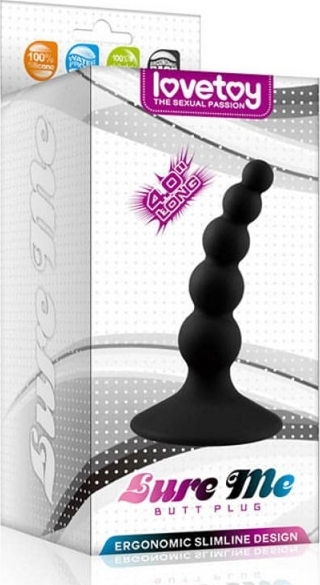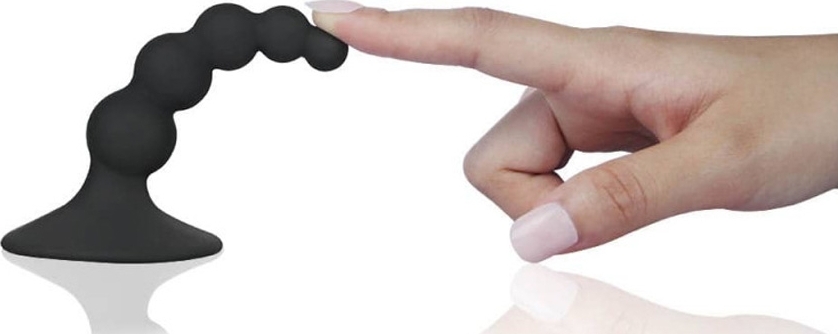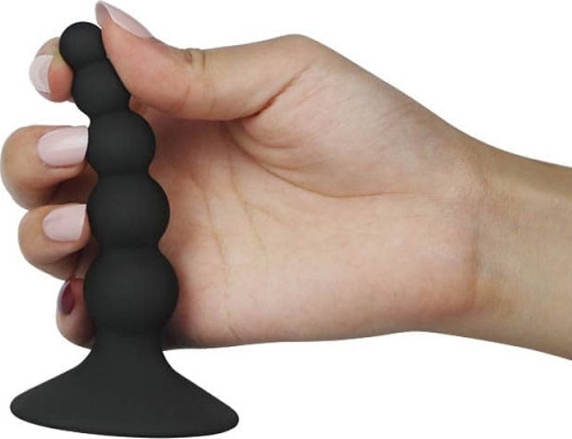 Dop anal Lure Me cu bile de dimensiuni diferite si o ventuza de fixare. Ventuza de fixare nu numai ca se fixeaza pe suprafetele netede, ci si opreste introducerea dopului in interior.