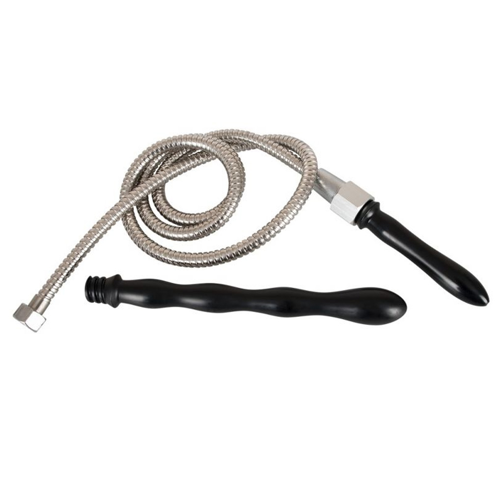 Furtun de dus care poate fi atasat la firul unui robinet de dus obisnuit. Unul dintre atasamentele incluse poate fi fixat la celalalt capat. Fiecare atasament are o gaura pentru un jet subtire de apa. Furtun de culoare argintie, atasamente de culoare neagra.Poate fi folosit atat vaginal cat si anal.Lungimea furtunului : aprox. 138cmLungimea completa a atasamentului 1 : aprox 14cm, diametru de la 2 la 2.3cmLungimea completa a atasamentului 2 : aprox 25cm, diametru de la 1.7 la 3 cmMateriale : otel inoxidabil, aluminiu, pvc