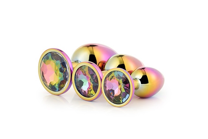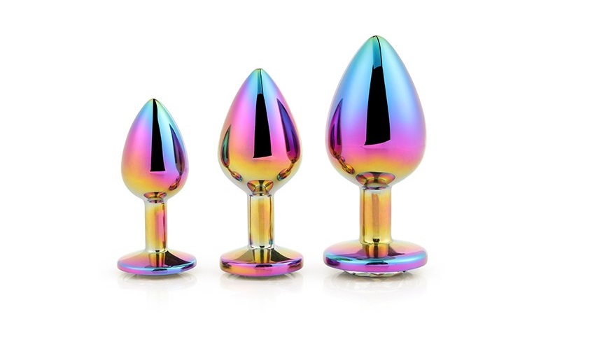 Colectia Gleaming Love prezinta un set de 3 dopuri anale din aluminiu de dimensiune diferite cu pietre pretioase la baza. Realizate din material usor si neted, aceste jucarii de placere aluneca usor, iar baza lata iti ofera siguranta, mentinand in acelasi timp bijuteria asezata frumos intre fese. Aceste dopuri sunt frumos decorate cu cate o piatra delicioasa rotunda. De la varf la baza, dopurile anale au un luciu impresionant care se contopeste minunat cu stralucirea pietrei pretioase si mai ales cu paleta cromatica vibranta. Forma conica combina usurinta utilizarii cu placerea erotica anala. Dopurile Gleaming Love pot fi incalzite sau racite in apa nainte de utilizare pentru a oferi senzatii suplimentare. Sunt incluse 3 saculeti de depozitare din catifea. Acest material are proprietatea de a fi compatibil cu toti lubrifiantii anali, fie ca sunt pe baza de apa, silicon sau ulei. Dimensiuni: Dop mic: 7,1x6x2,7 cm (Lungime totala x Lungime inserabila x Diametru) Dop mediu: 8,3x7x3,4 cm (Lungime totala x Lungime inserabila x Diametru) Dop mare: 9,5x8x4,3 cm (Lungime totala x Lungime inserabila x Diametru)