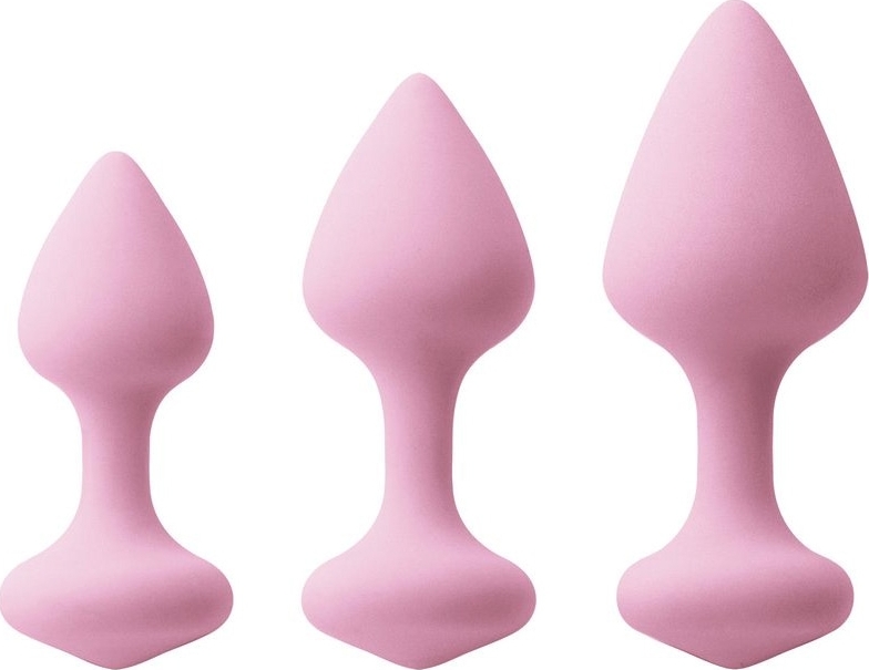 Un set de trei dopuri anale de marimi diferite, perfect pentru incepatorii ce doresc sa cunoasca mai intim tainele sexului anal. Poti incepe cu cel mai mic, in cele din urma absolvind cu modelul mai mare. Fabricate din silicon ferm, sigur pentru corpul uman, sunt catifelate la atingere, iar forma acestora, usor ascutita spre varf, te va ajuta sa ai o penetrare usoara si lina. Dimensiuni: Dopul mic: lungime totala – 7 cm; lungime utila – 5.5 cm; diametru – 2.8 cm. Dopul mijlociu: lungime totala – 8.5 cm; lungime utila – 6.5 cm; diametru – 3.5 cm. Dopul mare: lungime totala – 9.5 cm; lungime utila – 9.5 cm; diametru – 4 cm.
