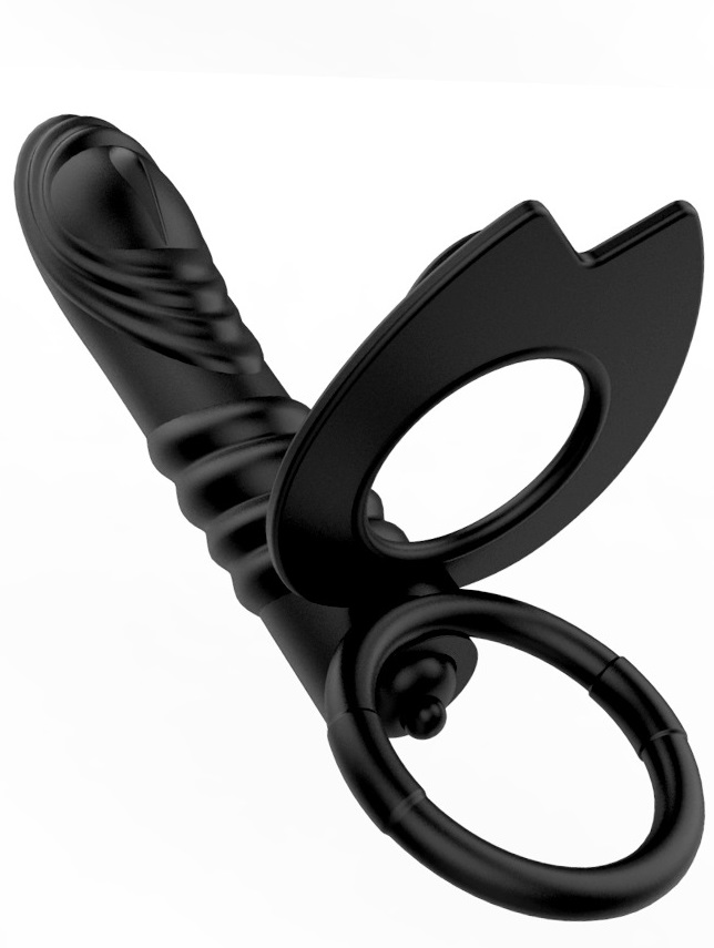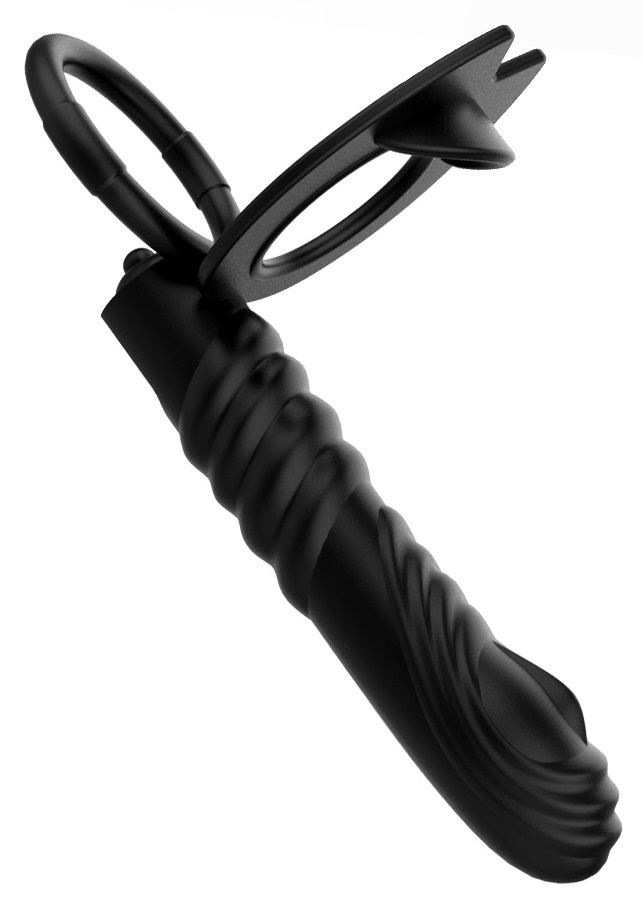 Inel Dublu de Penis Extra Sensations cu Stimulator Anal Silicon Negru Passion Labs