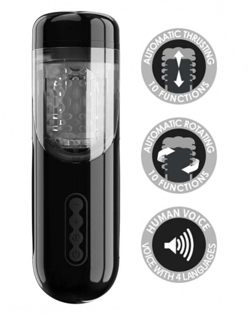 Imbunatatiti-va experienta de masturbare cu acest dispozitiv incredibil. Acest masturbator are o functie de miscare sus-jos si rotatie cu 10 viteze fiecare si integrare vocala in 4 limbi: aceasta va ofera experienta realista suprema! 10 setari de miscare sus-jos 10 setari de rotatii Voce senzuala in 4 limbi Reincarcabil prin USB Manson moale, asemenator cu pielea umana, cu orificul de intrare sub forma de vagin