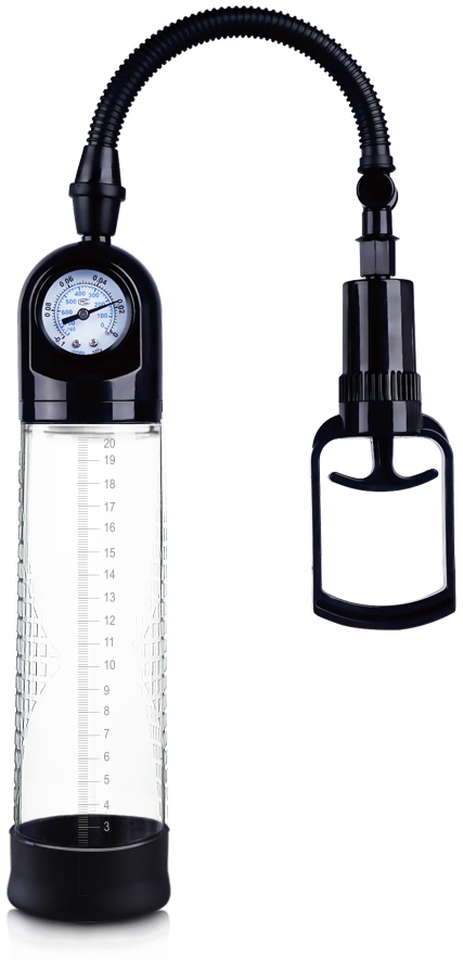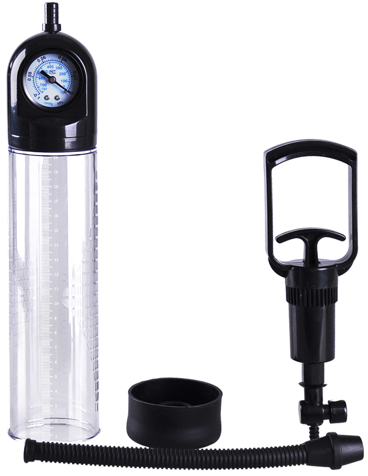 O pompa perfecta cu o lungime considerabila, iar, in acelasi timp, compacta. Prevazuta cu un tub transparent, pentru a putea vedea cat mai clar progresul si o pompita de mana ergonomica si deosebit de confortabila. Pompa mai este echipata cu indicator al presiunii (manometru), ce asigura un efort minim si o utilizare cat mai sigura pentru a obtine rezultate maxime. Inclus este un manson din silicon de calitate, de culoare neagra, acesta este deosebit de elastic, putand acomoda fara probleme majoritatea circumferintelor. Diametru interior inel manson: 2 cm+ Este recomandata utilizarea unui lubrifiant pe baza de apa cu acest produs si curatarea inainte si dupa fiecare utilizare.