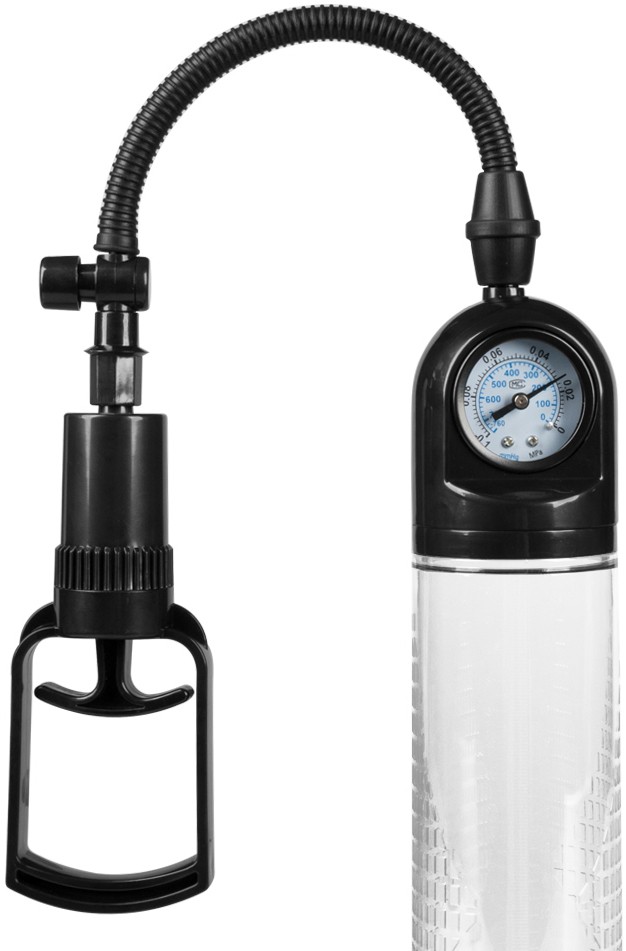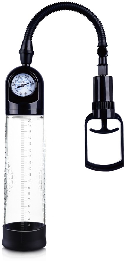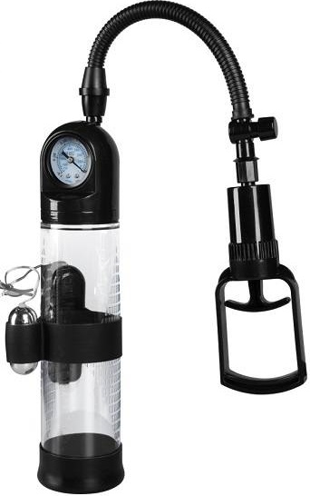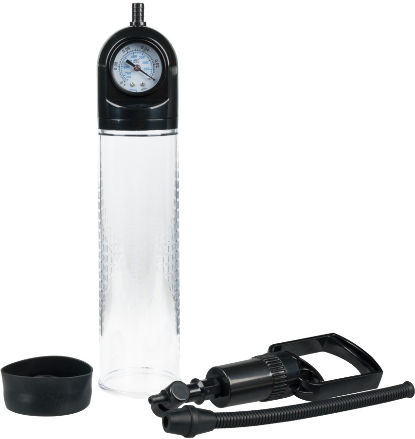 O pompa perfecta cu o lungime considerabila. Prevazuta cu un tub transparent, pentru a putea vedea cat mai clar progresul si o pompita de mana, pompa mai este echipata cu indicator al presiunii (manometru), ce asigura un efort minim si o utilizare cat mai sigura pentru a obtine rezultate maxime. Inclus este un manson din silicon de calitate, de culoare neagra, acesta este deosebit de elastic, putand acomoda fara probleme majoritatea circumferintelor. De asemenea este dotat si cu un ou vibrator detasabil, cu functie multispeed ce va garanta placere in timp ce penisul tau lucreaza pentru a obtine erectii cat mai puternice si lungimi impresionante. Oul functioneaza cu 2 baterii AA, neincluse. Diametru interior inel manson: 2 cm+ Este recomandata utilizarea unui lubrifiant pe baza de apa cu acest produs si curatarea inainte si dupa fiecare utilizare.
