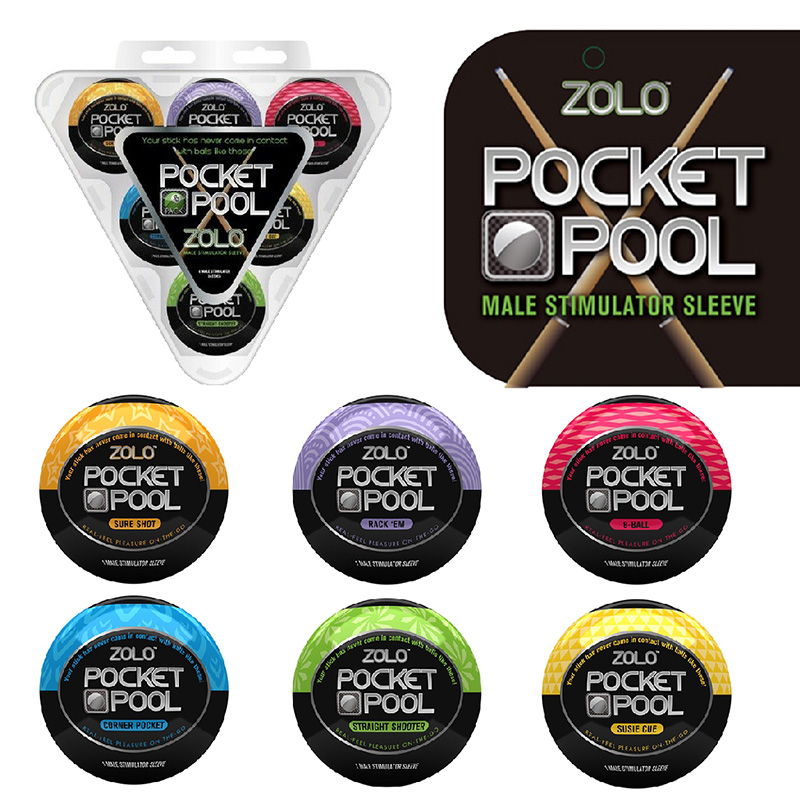 Set bile masturbatoare Zolo Pocket Pool – include 6 bile masturbatoare de buzunar: Sure Shot, Rack ‘Em, 8-Ball, Susie Cue, Corner Pocket ,Straight Shooter.Penisul tau nu a intrat niciodata in contact cu bile ca acestea, fara ftalati, material foarte sigur cu pielea. Texturi si culori asortate.Utilizare: Indepartati ambalajul exterior si deschideti bila. Indepartati mansonul din bila si aplicati o cantitate de lubrifiant fie in interiorul lui, fie pe penis. Recomandat pentru o singura utilizare.