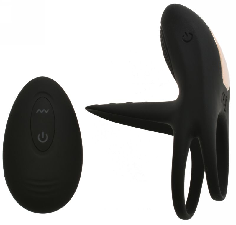 Inel Dublu pentru Penis Remote Control 10 Moduri Vibratii USB Silicon Negru Passion Labs