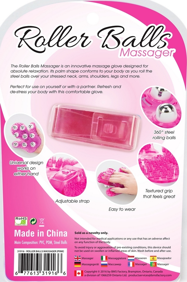 Aceasta manusa pentru masaj este usor de utilizat avand o curea reglabila ce se potriveste pentru orice mana.Dispunand de 9 bile metalice distribuite uniform pe manusa pentru cea mai buna acoperire, fiecare minge este capabila sa se roteasca 360 de grade, ceea ce inseamna ca va puteti misca mana in orice directie peste piele.Nu este nevoie de lubrifiere pentru obtinerea celor mai bune rezultate. Manusa este fabricata din TPE flexibil.Partea din spate are sute de cili mici pentru a putea fi purtata confortabil.