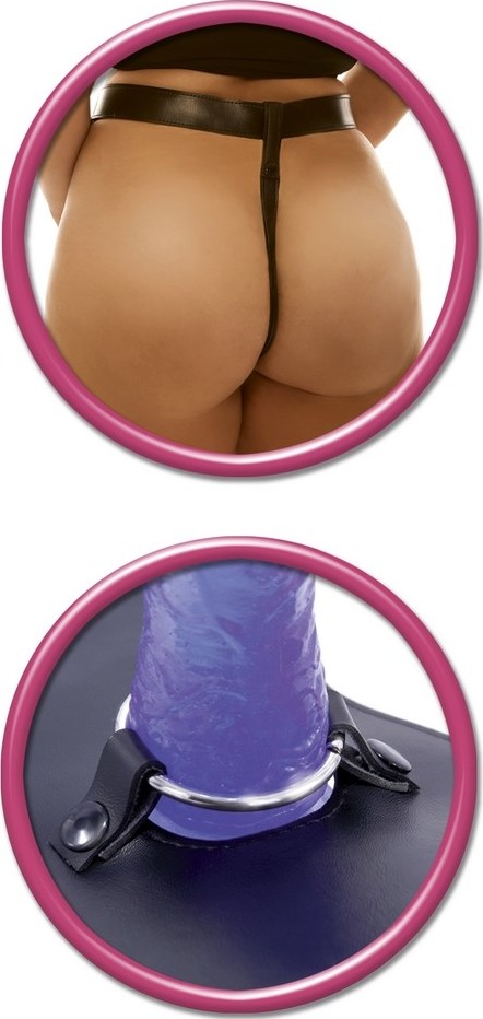 Strap on cu ham XXL (plus size) pentru femei. Se potriveste perfect conturului corpului tau, iar hamul este ajustabil ajungand pana la o marimea a taliei de 121 cm. Un inel de metal fixeaza dildoul de ham si ii asigura fermitatea necesara atunci cand admosfera se incinge. Penisul este detasabil, se poate folosi si separat – forma anatomica, cu proeminente sub forma de vene pentru marirea placerii. Confectionat din PVC cu finisaj jelly, moale, delicat si foarte placut la atingere.