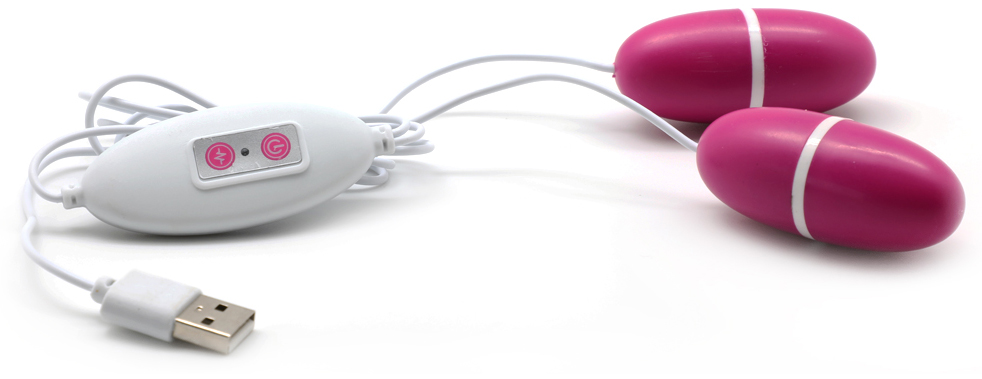 Cu 2 ouă vă puteți stimula două zone erogene în același timp. Cele două jucării sunt controlate cu ajutorul telecomenzii cu fir și sunt capabile de 12 moduri diferite de vibrații intense. Doar introdu mufa de USB în portul adecvat și te vei bucura de senzații incredibile! Dimensiuni ou: lungime: 5,5 cm, diametru: 2,5 cm Acest produs beneficiază de garanție timp de 2 ani de la achiziție!