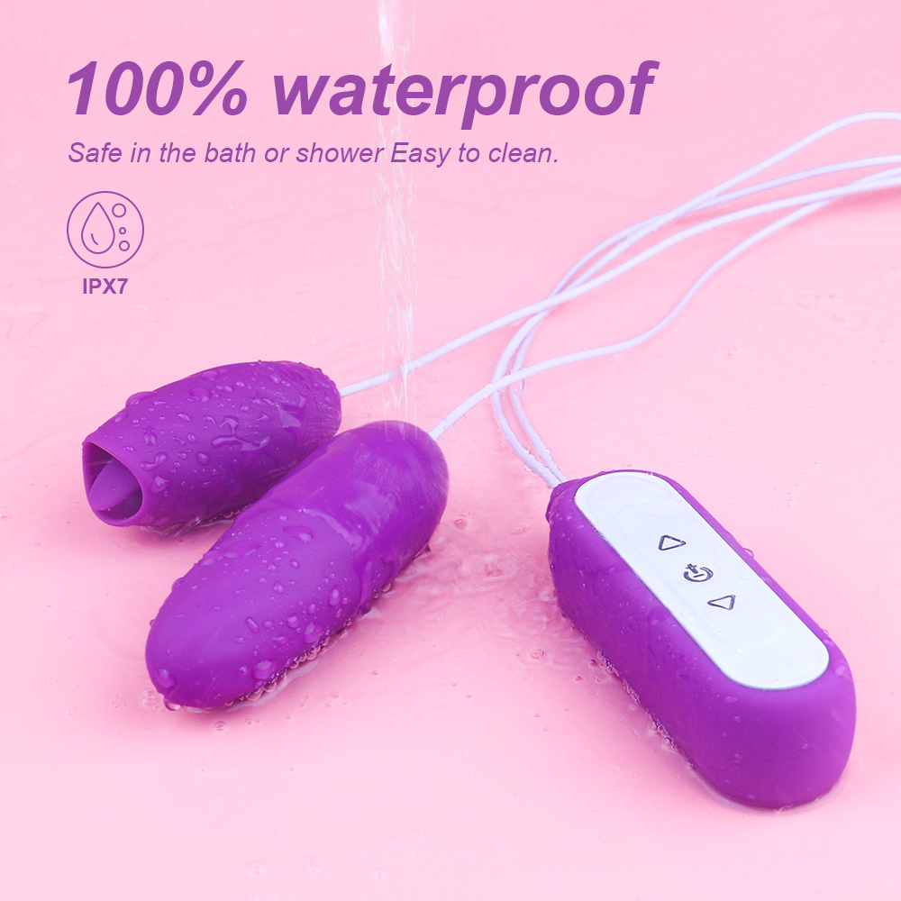 2 oua incantatoare, de doua ori mai multe orgasme! Conectate la o telecomanda cu fir, cu butoane ce controleaza separat fiecare jucarie, acestea iti vor oferi placere si satisfactie oriunde iti vei atinge punctele sensibile: pe clitoris, pe sfarcuri, pe perineu, pe gat. Limbutele moi din silicon “flutura” in 9 moduri diferite, de la tachinari delicate, pana la furnicaturi cu adevarat explozive iar glontul este prevazut cu 9 moduri de tractiune, de miscari sus-jos, pentru o penetrare profunda. Cele doua jucarii le puteti folosi impreuna sau separat, in functie de nevoiel si dorintele voastre! Datorita cablului lung, jucaria poate fi folosita impreuna cu un partener, pentru o placere orgasmica impartasita! Atunci cand nu mai are putere, atasati mufa cablului magnetic pe cele doua puncte de pe telecomanda si asteptati incarcarea completa, aproximativ, 1,5-2 ore. Recomandam folosirea unui lubrifiant pe baza de apa impreuna cu acest produs si curatarea lui dupa fiecare utilizare cu apa calda si sapun. pentru o igiena completa, pulverizati apoi o solutie toy cleaner. Rezistent la apa! Clasa de impermeabilitate: IPX7 Vezi standardul de impermeabilitate pentru acest produs! Acest produs beneficiaza de garantie timp de 2 ani de la achizitie!