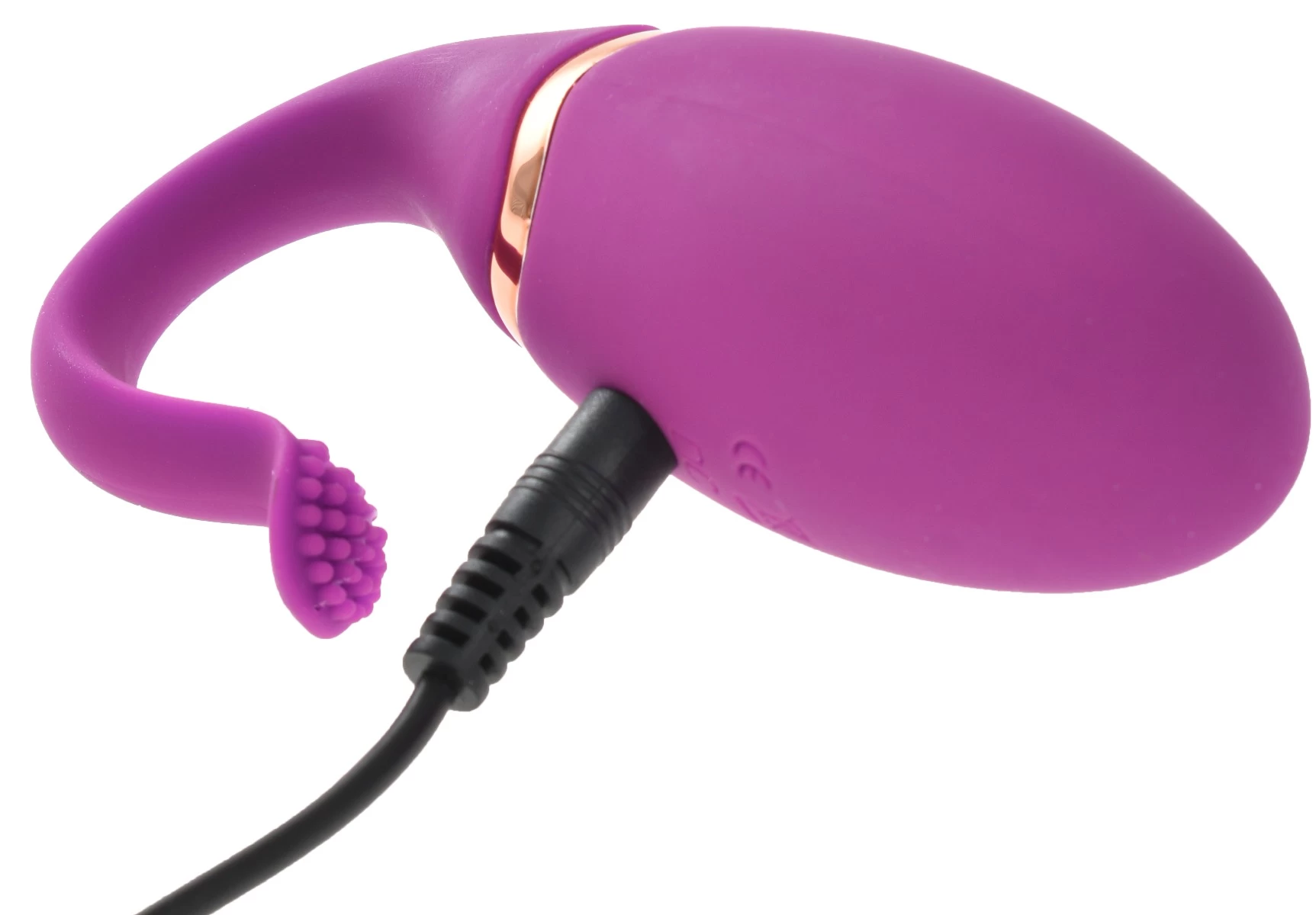 Acest minunat oua duce o noua dimensiune distractiei de la distanta. In timp ce acesta iti maseaza punctul G cu unul dintre cele 10 moduri de vibratii, coada curbata cu peri fini la capat iti stimuleaza clitorisul pentru un mix de placeri coplesitor. Super-silentios cu un motor ultra-puternic, acest ou ofera o stimulare discreta, precisa, ca parte a jocului solo sau impreuna cu un partener. Introduce vibratorul neted in forma de ou pentru masaje delicioase ale punctului G si directioneaza capatul subtire catre clitoris pentru un masaj simultan al celor mai sensibile puncte. Foloseste-l singura sau inmaneaza-l telecomanda wireless partenerului pentru senzatii dupa placul lui. Foloseste lubrifiant pe baza de apa pentru a te bucura din plin de beneficiile vibratorului. Vibratorul se incarca cu ajutorul USB-ului timp de 120 de minute pentru 60-120 de minute de joaca in functie de setarile folosite. Telecomanda wireless este dotata cu 1 baterie CR2032. Acest produs beneficiaza de garantie timp de 2 ani de la achizitie!