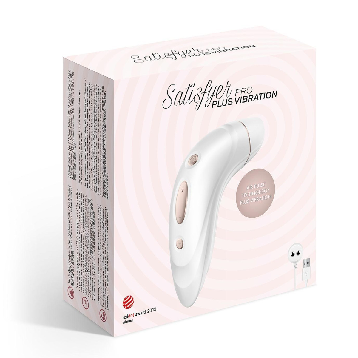 Îți plac undele de presiune ale Satisfyer, dar îți lipsesc vibrațiile senzuale ale unui vibrator clasic? Noul Satisfyer Pro Plus Vibration combină valurile de presiune râvnite și stimulante cu vibrații senzuale, oferindu-ți o experiență de plăcere incomparabilă! Designul acestui Satisfyer arată cam ca un bumerang – odată avut în mână, va veni întotdeuna înapoi. Fabricat din silicon neted și mătăsos, acest distribuitor de plăcere prezintă o stimulare clasică, fără atingere a undelor de presiune clitorală, precum și o funcție vibratoare tentantă. Atasamentul moale din silicon îți înconjoară clitorisul, astfel încât valurile de presiune blândă până la puternică te conduc către un extaz pur, în timp ce vibrațiile plăcute oferă stimulare suplimentară vaginului tău. Vibratorul oferă 11 setări de intensitate pulsatorii. Funcția de vibrație asigură un plus de plăcere: motorul liniștit, dar puternic, face ca capul să vibreze, masându-vă cu o selecție de 10 setări de vibrații variate. Undele de presiune și vibrațiile pot fi controlate separat, oferindu-vă o experiență de plăcere extinsă, completă cu un final fericit intens. Cauți emoții subacvatice? Datorită finisajului său rezistent la apă, acest prieten de plăcere poate fi folosit la duș și cadă, invitându-vă să vă bucurați de o baie relaxată de dragoste. Undele de presiune sunt activate prin butonul On / Off și pot fi reglate în sus și în jos cu ajutorul butoanelor +/- în funcție de starea ta de spirit. Vibrația este controlată de un alt buton, ceea ce înseamnă că vă puteți bucura întotdeauna de cele două funcții separat. Datorită bateriei reîncărcabile integrate, Satisfyer Pro Plus Vibration poate fi încărcat cu ușurință cu cablul USB furnizat. Capul de silicon care se potrivește pielii are o formă ergonomică, se apropie de clitoris și îl încercuiește foarte ușor și precis. Capul este, de asemenea, demontabil pentru o curățare ușoară. Pentru experiența de plăcere finală, vă recomandăm să folosiți jucăria cu un lubrifiant pe bază de apă. Clasa de impermeabilitate: IPX7 Vezi standardul de impermeabilitate pentru acest produs!