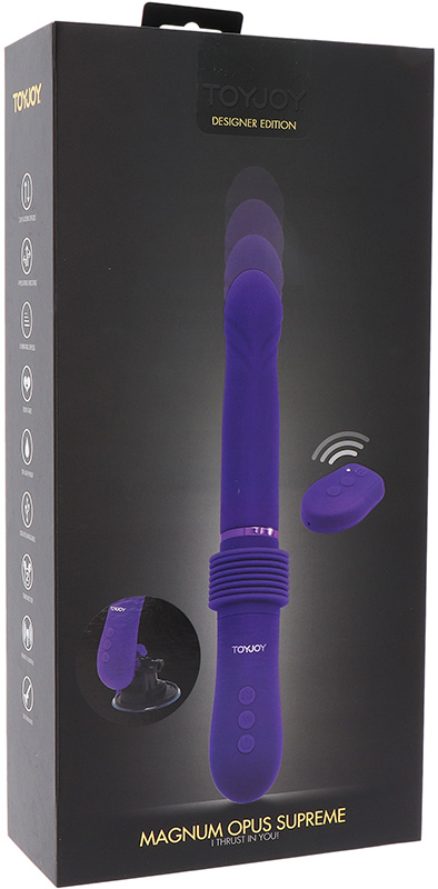 Magnum Opus Supreme este cel mai nou vibrator de la TOYJOY Designer Edition. Acest design premium, de prima clasa, are o lungime incredibila de 31 de centimetri in total, garantandu-va ca va atinge toate punctele fierbinti. Vibratorul dispunde de o multitudine de functii diferite pentru a-ti satisface si cele mai exigente asteptari! Cele doua motoare puternice ofera 3 viteze de impingere, up&down, 4 functii de pulsare si 3 viteze de vibrare. Activarea vibratorului si a functiilor acestuia se face cu ajutorul telecomenzii wireless sau de la baza vibratorului. Controalele intuitive faciliteaza operarea si va permit să va schimbati rapid intre setari sau intensitati in timpul jocului. Pentru o perfecta libertate, in pachet este inclus si un dispozitiv de fixare pe suprafetele neted pe care se ataseaza vibratorul. Suportul este prevazut cu o ventuza puternica si poate fi reglat in unghiul dorit. Vibratorul este confectionat din silicon de cea mai buna calitate, moale si neted la atingere, sigur pentru corp, hipoalergenic. Un alt avantaj este faptul ca Magnum Opus Supreme vine intr-un ambalaj de lux, care poate fi utilizat ca o cutie de depozitare eleganta intre utilizari.