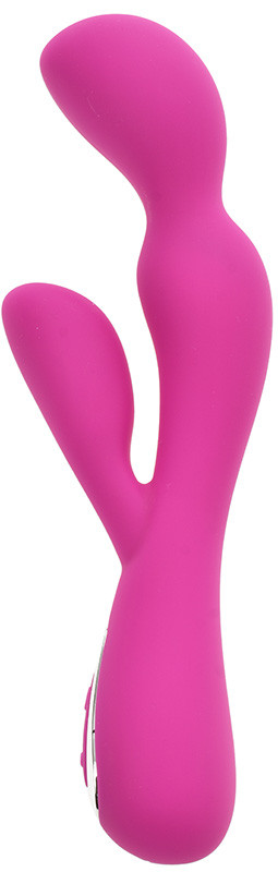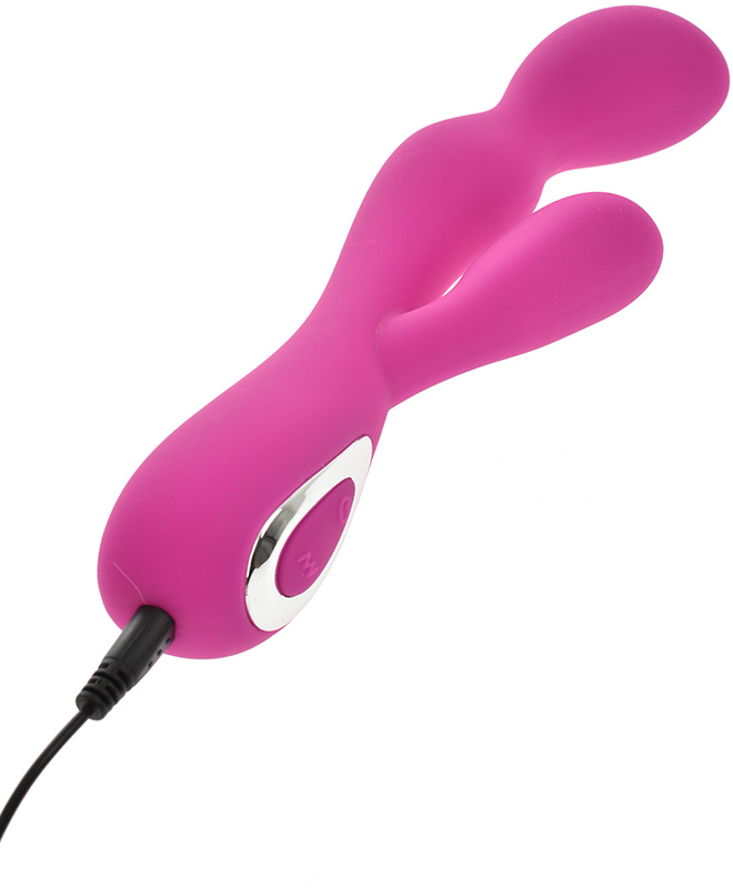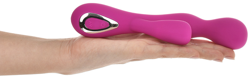 Vibratorul Jayna oferă o dublă stimulare încântătoare! Învăluit într-un silicon foarte calitativ, neted și moale, hipoalergenic, fără ftalați și cu detaliu metalic argintiu din ABS! Elegant, culoare intensă, acesta te cucerește încă de la prima vedere. Produsul deține 2 motoare puternice, situate în fiecare dintre celor două brațe. Cel mare, brațul vaginal are o formă sinuoasă, cu porțiuni mai late dar și mai înguste cu rolul de stimulare intensă a mușchilor vaginali. Vârful este mărit și curbat într-un unghi care permite atingerea cu ușurință a punctului G! Stimulatorul clitoridian este flexibil, neted și se așează perfect pentru stimularea clitorisului. Ambele brațe vibrează cu 3 viteze și 27 de moduri diferite! Și tot atâtea moduri de distracție! De la cea mai delicată atingere, până la cea mai intensă și complexă mișcare, această varietate de vibrații satisface și cele mai pretențioase gusturi! Controlul vibratorului se face de la nivelul celor două butone, cel de on/off si cel pentru derularea modurilor de vibrații. Încărcarea produsului se face cu ajutorul USB-ului. Acest produs beneficiază de garanție timp de 2 ani de la achiziție!