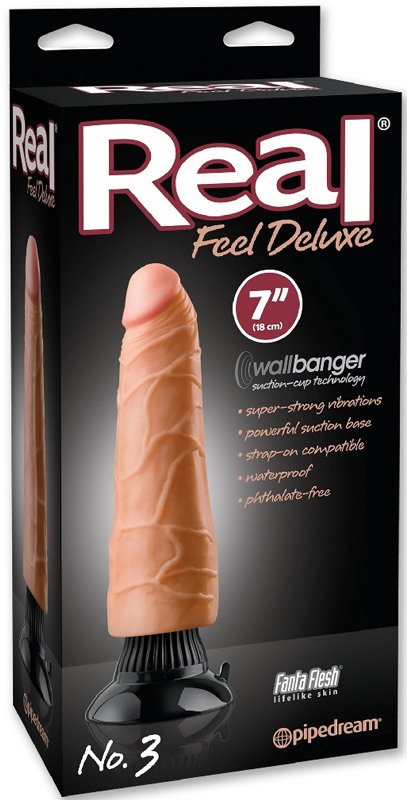 O serie de Real Feel Deluxe.Bucurati-va de o serie de catifea-moale de Real Feel Deluxe, cu vibratii incredibil de realiste si piele care este la fel de reala. Proiectat cu grija, cu un cap pronuntat, cu venele umflate. Forma ultra-realista, textura si culorile arata si se simt ca reale. Materialul transmite miezul acestei piele si este absolut sigur. Nu contine ftalati.Pentru a activa vibratiile, trebuie sa rasuciti baza si sa va bucurati de senzatiile inexprimabile. Un suport puternic la baza il va asigura pe aproape orice suprafata neteda. Compatibil cu sistemul de cablaj, pentru a fi folosit ca strapon. Puteti sa-l luati cu dvs. in dus sau intr-o baie fierbinte, deoarece este complet impermeabil. Usor de curatat cu un detergent de jucarie si apa calda.