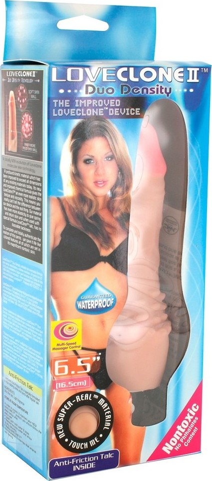 Vibrator Loveclone II un vibrator confectionat din material moale, asemanator cu pielea umana, cu gland si o textura realista, cu striatii proeminente sub forma de vene pentru intensificarea placerii. La baza este dotat cu cili fini, foarte moi, pentru stimularea clitorisului si a labiilor in timpul penetrarii. Vibratorul Loveclone este rezistent la apa si este dotat cu vibratii cu intensitate reglabila.
