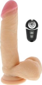 Un extraordinar vibrator realist ce cu siguranta te va purta pe noi culmi ale placerii sexuale. Creat special cu o forma anatomica perfect detaliata, o combanatie irezistibila de moale si rigid ce iti va garanta o placere absolut reala. Fata de vibatoarele normal, acest vibrator ofera miscari de giratie, iar telecomanda wireless cu care este prevazut te ajuta sa ii controlezi foarte usor cele 10 functii diferite pe care le ofera. Vine cu acumulator si incarcator USB, deci vei scapa de grija bateriilor. Ofera indicator cu led pentru fiecare functie a sa. Mai mult, este prevazut cu ventuza puternica pentru fixarea pe diferite suprafete lucioasa, ajutandu-te astfel sa te bucuri de placerea irezistibila a sa. Dimensiuni: 20 (lungime totala) x 16 (lungime utila) x 4 – 4,5 (diametru) cm.