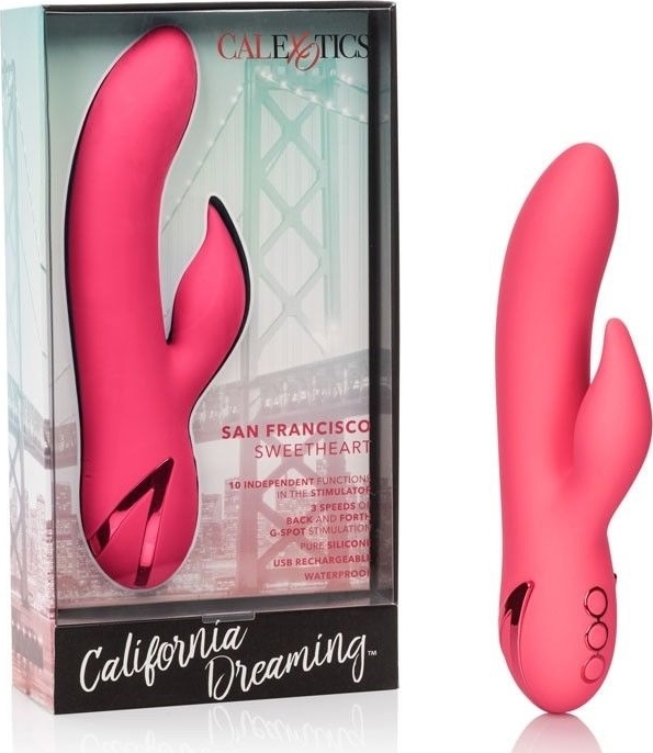 Acest iepuras plin de fericire este intr-adevar rezistent la apa, deci puteti profita de placerile oferite de acesta inclusiv in cada. Construit dintr-un silicon superb de culoare roz, San Francisco Sweetheart arata la fel de bine pe cat se simte. Pune-l pe masa si strecoara cateva priviri pentru a obtine entuziasm de pompare. In mana, forma clasica este familiara si foarte echilibrata in greutate, este usor de ghidat peste zonele de placere. Cu varful sau rotunjit, Vibratorul San Francisco patrunde usor, cautand imediat zone erogene interne. Imitand miscarea, renumita pentru magia ei orgasmica, arborele varfului se indoaie si se indreapta neobosit pentru un masaj. Activati trei viteze de rotire folosind un buton dedicat pe interfata simpla cu 3 butoane. Alte zece moduri de vibratii clitorale continue, pulsante si escaladate – un buton separat activeaza si variaza vibratiile de stimulare. Reincarcabil prin USB. O incarcare completa de 25 minute va oferi pana la 2,5 ore de distractie. Cablul este inclus. Se curata usor cu apa calda sau o solutie de curatare. Compatibil cu orice lubrifiant de calitate superioara pe baza de apa – evitaИ›i contactul cu lubrifianti si produse din silicon. Rezistent la apa.