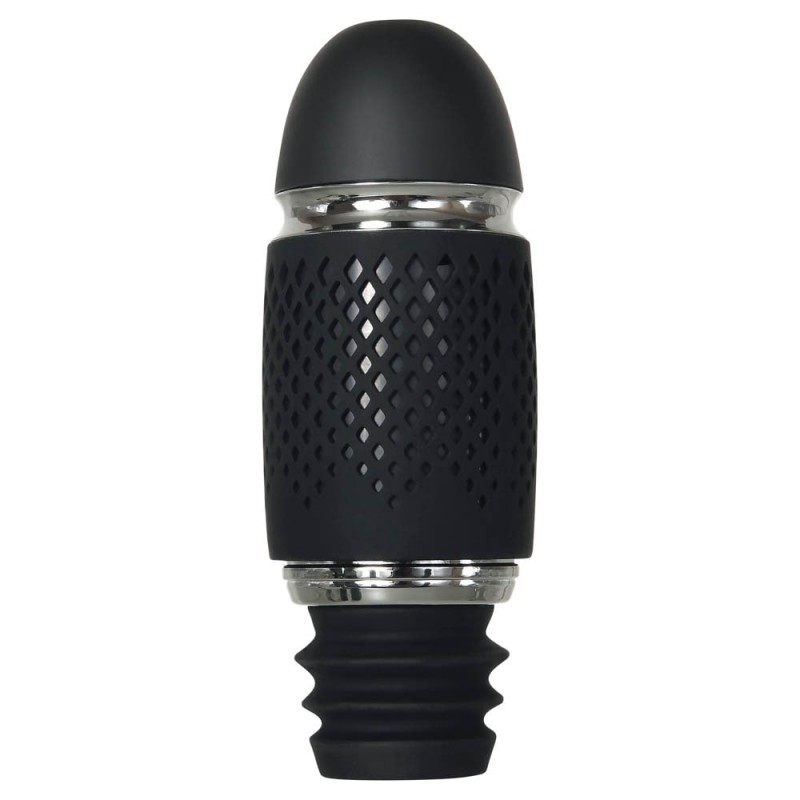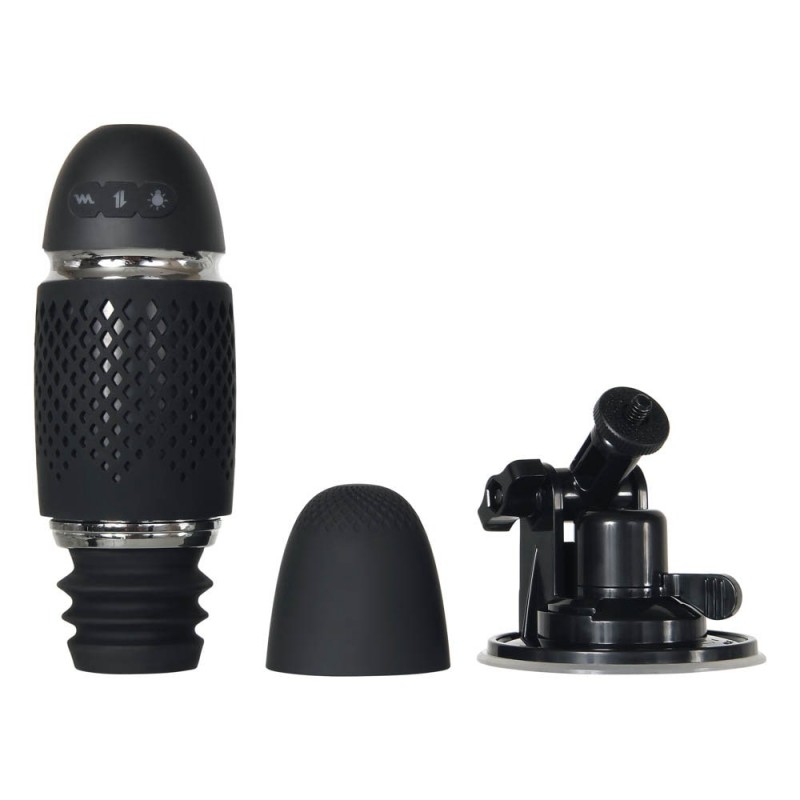 Calatoria cu jucaria ta preferata a devenit mai usoara cu acest vibrator robust, care se fixeaza si este pregatit sa te satisfaca imediat! Acesta include 5 parti: 1 motor cu panoul de control 1 capat de penetrare curbat, flexibil, cu striatii (15 cm lungimea inserabila, 3,6 cm diametru) 1 capat de penetrare drept, flexibil (15 cm lungimea inserabila, 3,6 cm diametru) 1 suport detasabil cu ventuza 1 cablu USB Caracteristici: Vibrator de calatorie puternic de impingere Se fixeaza rapid si usor Doua atasamente pentru senzatii diferite Motorul are capac superior pentru siguranta atunci cand nu este utilizat Ventuza detasabila iti permite un joc fara maini Atasamentele sunt flexibile Fabricat din silicon igienic, usor de curatat Finisaj cromat negru elegant Motorul are o textura de diamant pentru o prindere usorara Lumina LED violet straluceste la baza 7 viteze puternice de vibratii 7 viteze si modele puternice de miscari sus-jos.