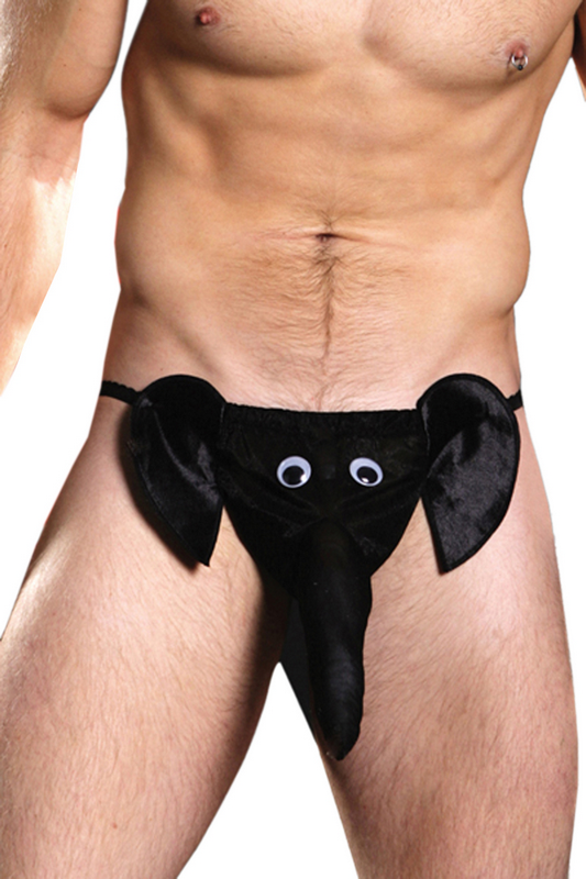 Bikinii string cu un cap de elefant in partea din fata reprezinta un cadou sexy si amuzant in acelasi timp pentru iubitul tau! Urechile mari, ochii care parca te privesc si trompa ca adaposteste penisul nu doar ca vor starni rasete dar vor incinge atmosfera mai repede decat te-ai fi asteptat. Materialul elastic si moale se potriveste siluetelor cu marimile S, M, L.