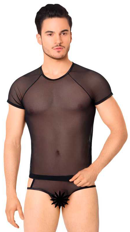 Set lenjerie pentru barbati confectionat din material transparent, moale cu decupaje pe solduri. Contine tricou si boxeri sexy transparenti ce vor incinge imediat atmosfera din dormitor. Material: 90% Poliamida, 10% Elastan. Marime: M/L (bust 92-100; talie 74-82; solduri 98-106)