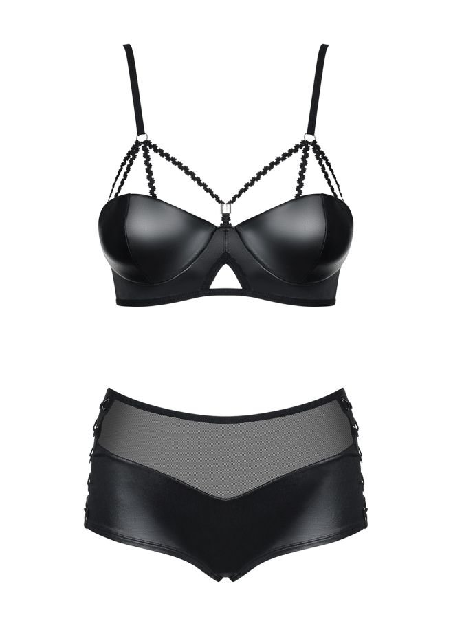 Pregateste-te pentru experiente uimitoare! Vei iubi fiecare detaliu tentant al acestui set fierbinte. O sa-l imbraci in curand, nu-i asa? Aspectul wetlook va condimenta distractia. Detalii: set uimitor – stil picant „aspect umed”! bretele si inchidere reglabila – confort deplin inelele decorative conecteaza bretelele cu sutienul cupe captusite sustinute cu balene – acestea ajuta la modelarea si ridicarea sanilor pantaloni scurti asortati- realizati din plasa transparenta si tesatura lucioasa seducatoare plasa elastica pe lateralele panatlonilor scurti acest set consta din: sutien si pantaloni scurti cu talie inalta materiale elastice (90% poliamida, 10% elastan).