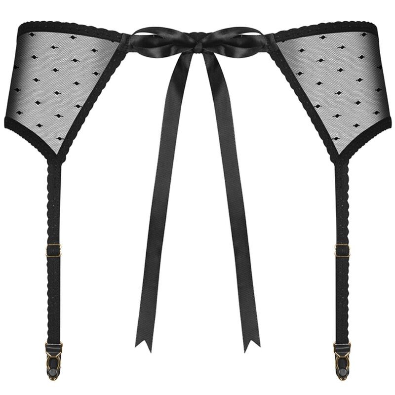 Visezi la o noua completare la setul tau preferat de lenjerie intima? Avem ceva in care nu va veti putea lua ochii de la reflexia ta din oglinda… Eleganta creata dintr-o combinatie de plasa clasica neagra si translucida cu buline. Noul portjartier are un aspect atat frumos! Cu Bowessa pe tine te vei simti extrem de feminina, iar iubitul tau te va duce in pat… In seara asta vei afla cat de multa placere este sa porti un portjartier sexy. Descopera detaliile tentante: portjartier cu snururi din satin pe spate – spate frumos subliniat plasa delicata, neagra, decorata cu buline bretele reglabile pentru jartiere – confort la purtare ornament metalic pe fata – atragator ciorapii nu sunt inclusi bikinii nu sunt inclusi material elastic si placut la atingere (90% poliamida, 10% elastan).