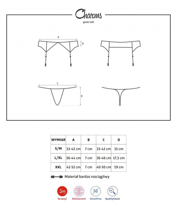 Te-ai gândit la ceva absolut special? Această combinație de material moale, negru și dantelă cu flori va arăta uimitor pe tine. Alege ciorapii preferați și fii gata pentru o distracție incredibilă! Partenerul tău va înnebuni! Cunoaște mai bine acest portjartier: lenjerie de un negru profund îmbogățit cu dantelă florală pe față și pe spate detalii perfecte care merită văzute și… atinse! bijuterie strălucitoare, fara nichel, deci fără simptome alergice tanga sexy, moale inclusă țesătură frumoasă și elastică (90% poliamidă, 10% elastan) mărime L/XL (36 cm- lungime talie portjartier neextinsă / 44 cm- lungime talie portjartier extinsă maxim) Notă! În pachet nu sunt incluși ciorapii. Puteți achiziționa separat de pe site-ul nostru din categoriile Lenjerie Sexy Femei -> Ciorapi