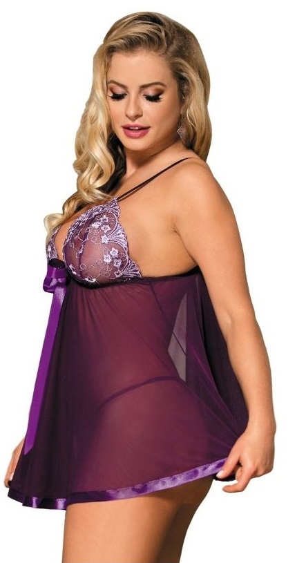 Subblime este un brand de lenjerie intima conceputa in SUA si creat pentru femeile care doresc sa se simta extrem de sexy si irezistibile cu materiale de inalta calitate si confortabile. Babydoll incredibil de senzual Culoare mov incitanta Combinatie grozava de plasa, dantela si satin Pietre stralucitoare pe sani Design exclusivist Tanga asortata inclusa Prezentare in cutie frumoasa. Marime: S/M bust 81-91 cm talie 61-71 cm solduri 86-96 cm.