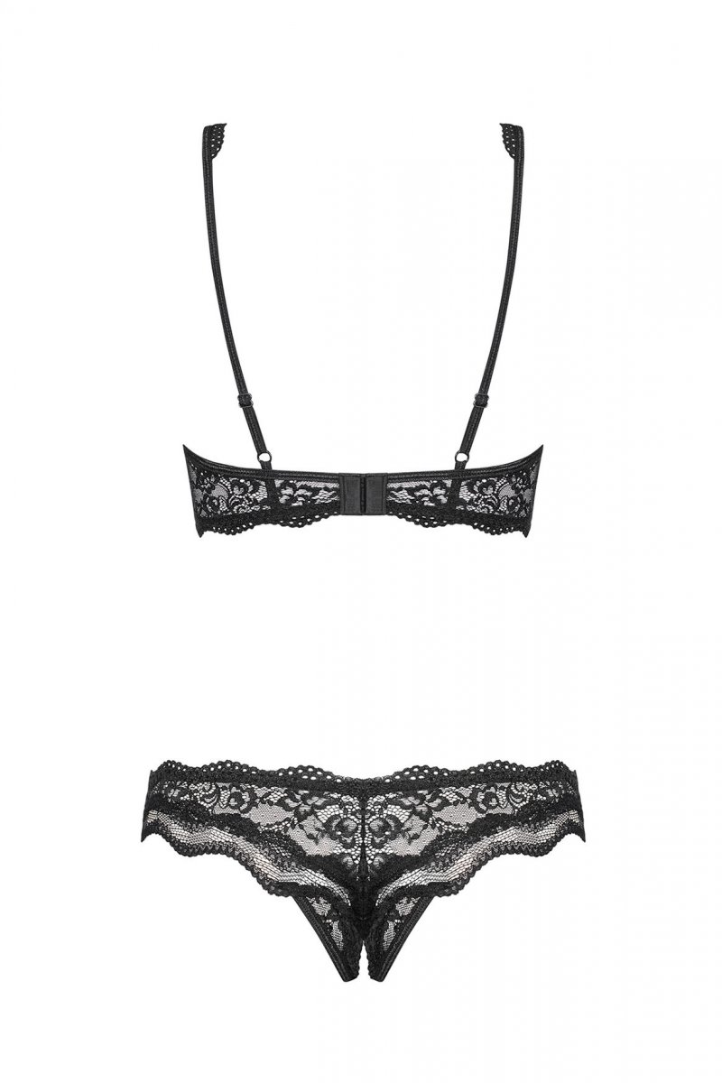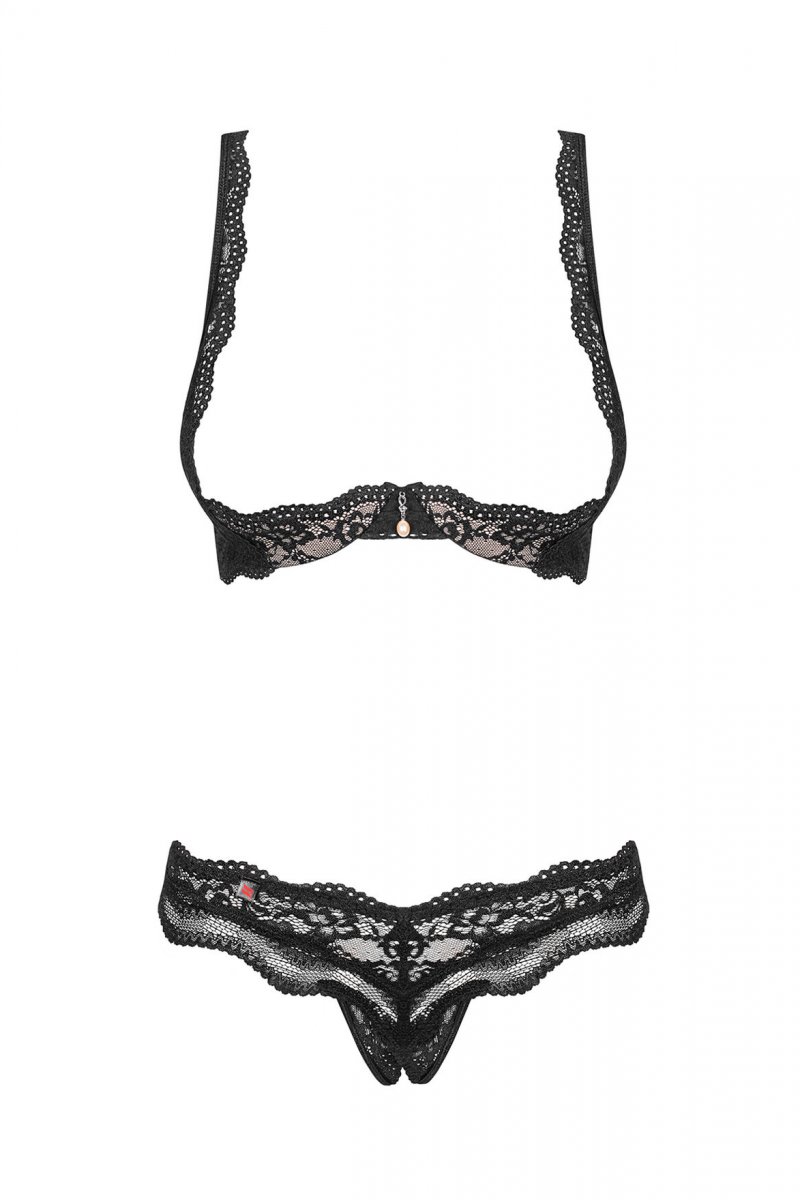 Set 2 Piese Lenjerie Luvae Fara Cupe Crotchless Negru S/M