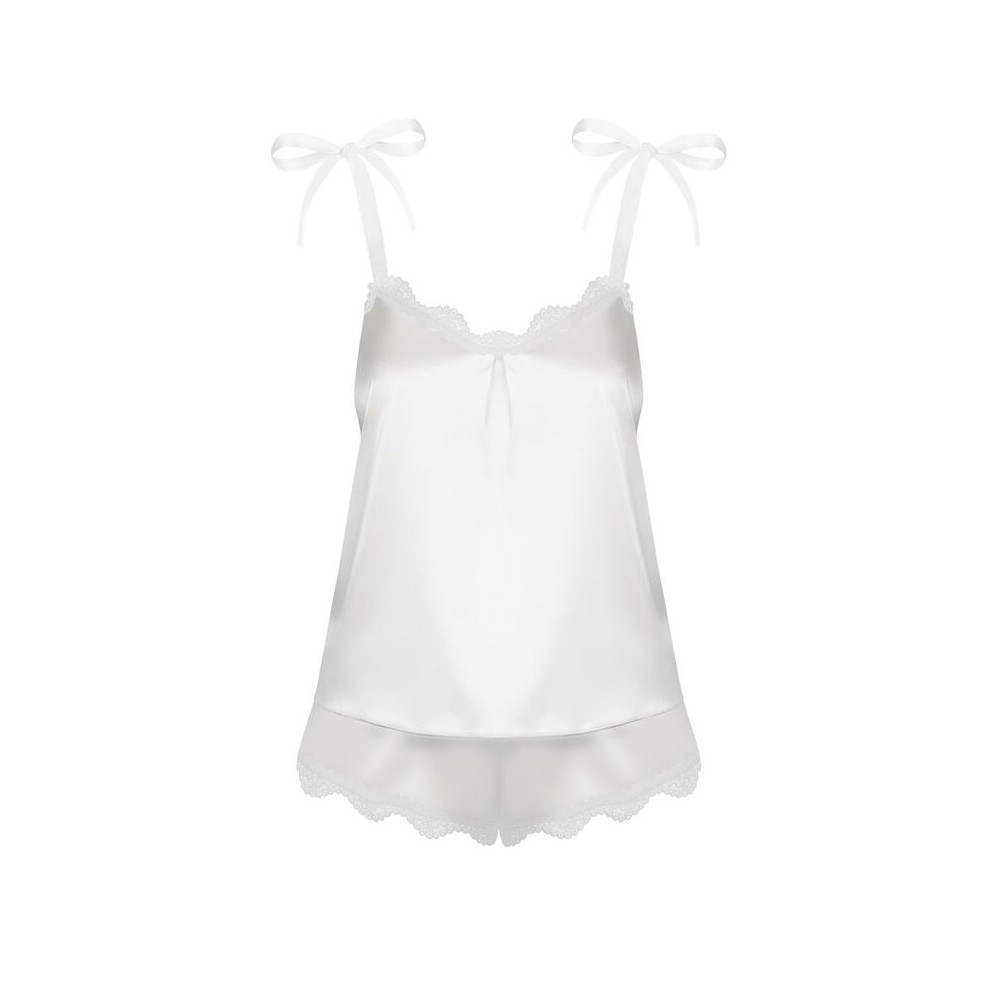 Va asteapta o surpriza placuta! Inchide ochii si imagineaza-ti pijamaua perfecta, care va fi senzuala si confortabila in acelasi timp. Lasa dantela alba si stilul fantastic al setului Prima Neve sa te ispiteasca. Funditele pe umeri si materialul super sexy, din satin, iti vor oferi un stil minunat. Lejeritatea tesaturii, decolteul frumos, albul incantator … Asta vedeti cand va imaginati „pijamale senzuale”? Va dorim vise picante … Detalii: Set Prima Neve – top si pantaloni scurti material neted, din satin – eleganta clasica bretelele se leaga pe umeri volane decorative si dantela pe margini pantaloni scurti legati in fata material placut, moale (95% poliester, 5% elastan).